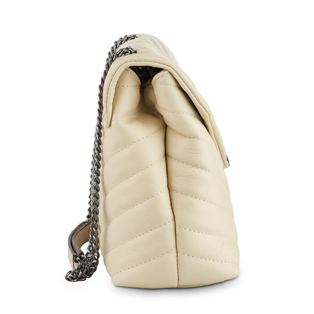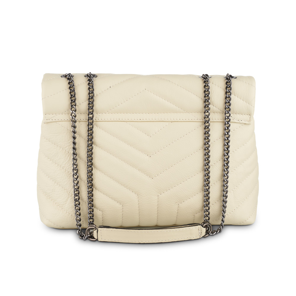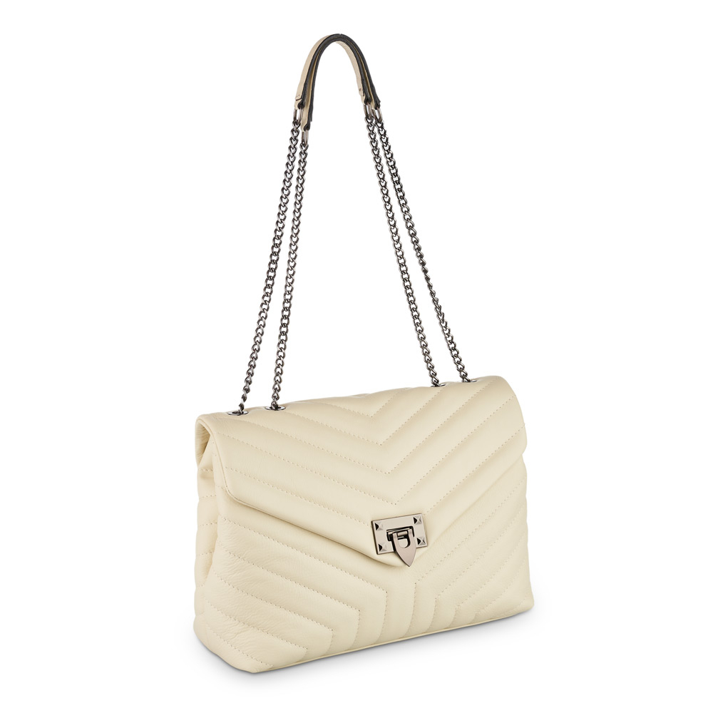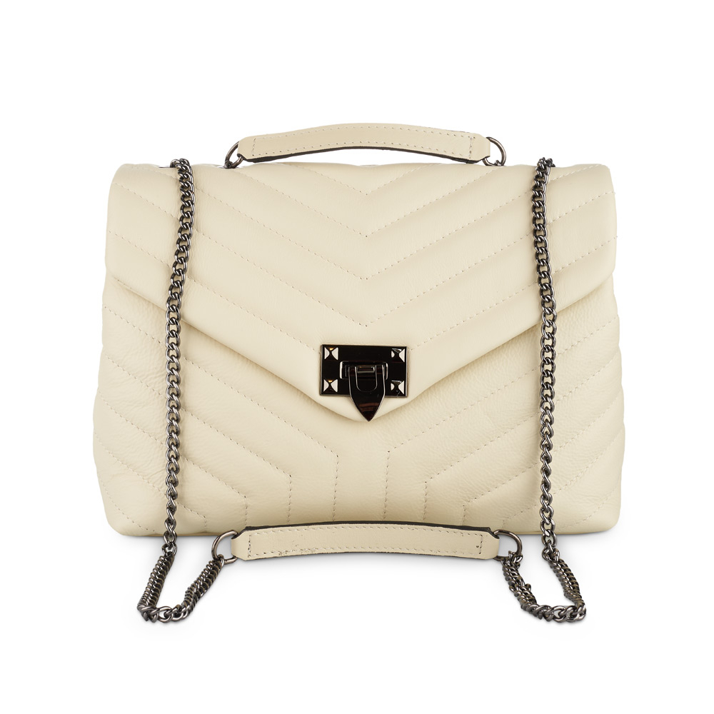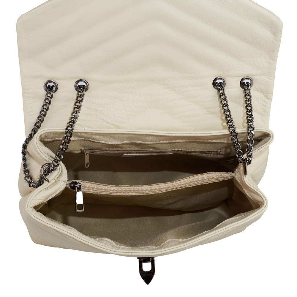 Geantă Anais, piele naturala crem, bareta metalica, 8105