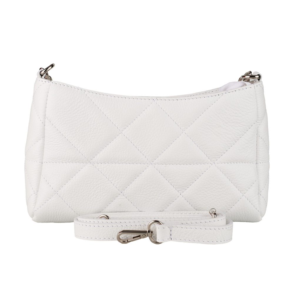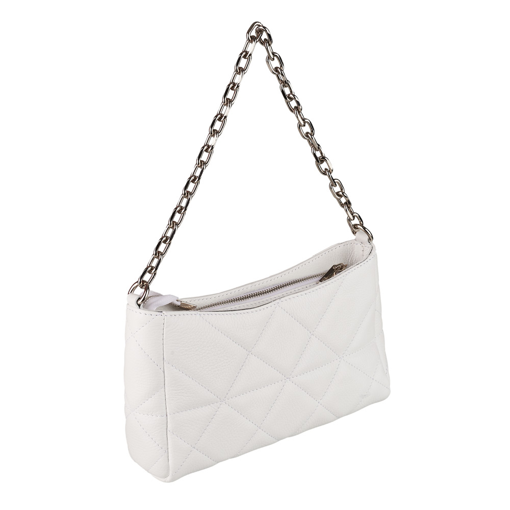 Geantă Kirra, piele naturala alba, bareta metalica, 8202